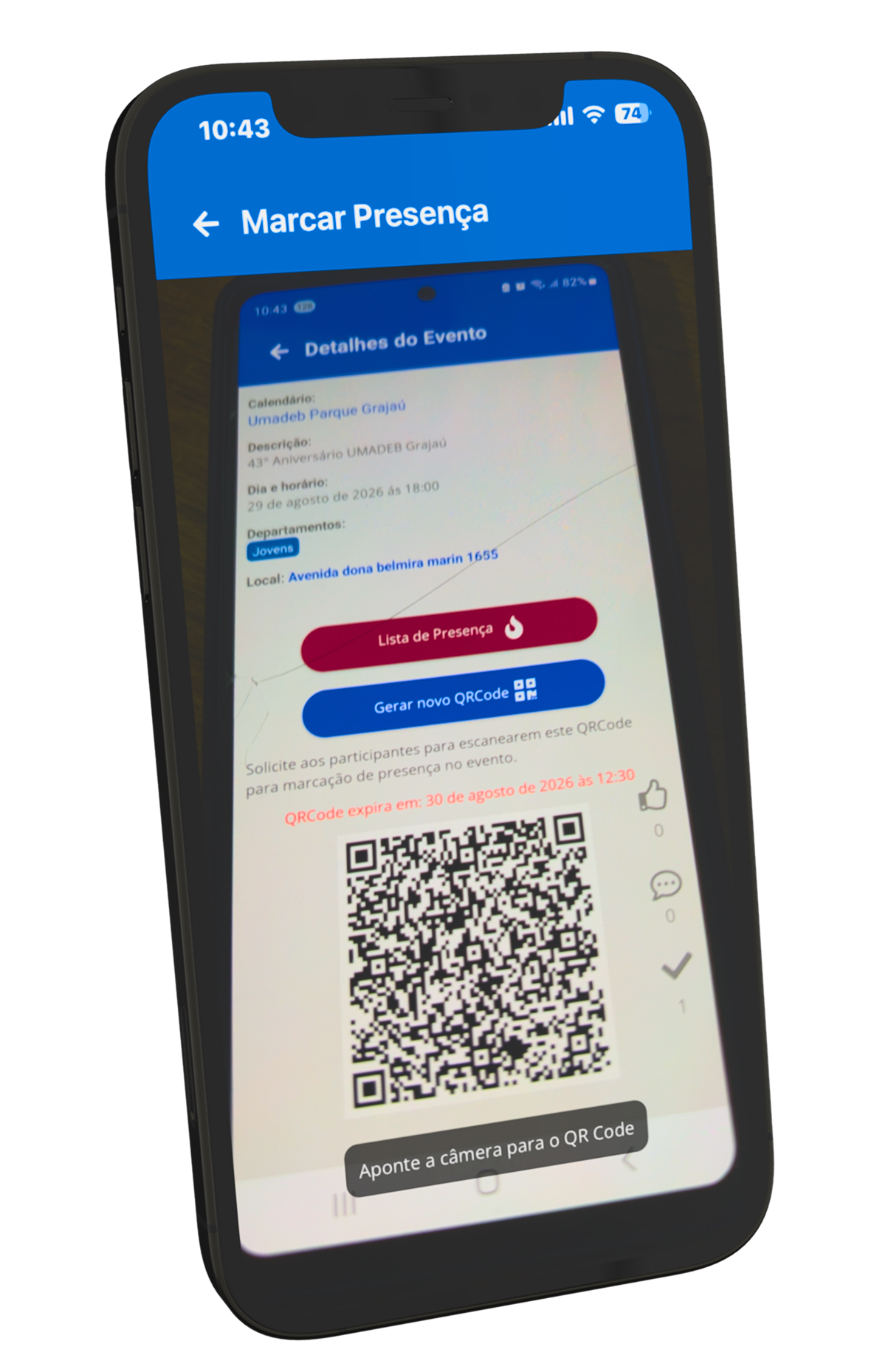 Chega de listas manuais. Com um simples escaneamento, a presença já fica registrada automaticamente.